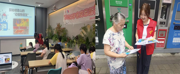 7月7日至11日,團隊開展“棲霞山生態(tài)價值”主題科普周活動,深入社區(qū)與校園,通過PPT展示、動畫講解、案例分享等形式,生動闡釋棲霞山的生態(tài)功能與保護意義,融入國家生態(tài)文明政策與行業(yè)前沿,幫助公眾明確自身在生態(tài)保護中的責(zé)任與行動方向;顒油皆O(shè)置趣味問答、互動咨詢等環(huán)節(jié),配備專業(yè)科普志愿者提供一對一解答,重點普及新污染物危害,并向中小學(xué)生發(fā)出環(huán)保倡議。同時,團隊精心制作主題海報與科普手冊,組織生物標(biāo)本展覽,以寓教于樂的方式拉近公眾與自然的距離,切實提升生態(tài)保護的知曉率與參與度。