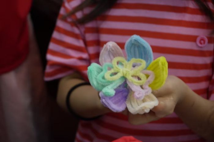 在扭扭棒活動(dòng)環(huán)節(jié),色彩繽紛的扭扭棒成了孩子們手中的“魔法道具”。他們的小手靈活舞動(dòng),時(shí)而彎曲,時(shí)而纏繞,專注神情仿佛在施展神奇魔法。每一個(gè)作品都獨(dú)一無二,充滿天馬行空的創(chuàng)意。孩子們?cè)趧?chuàng)作過程中,不僅鍛煉了動(dòng)手能力,更激發(fā)了無限想象力。志愿者們積極融入其中,與孩子們并肩作戰(zhàn)。當(dāng)遇到復(fù)雜操作,孩子們手足無措時(shí),志愿者們及時(shí)伸出援手,耐心輔助他們完成。一件件“大作”順利完成后,孩子和志愿者臉上都洋溢著滿滿的成就感,孩子們更是擁有了屬于自己的心儀作品,這份喜悅在空氣中久久彌漫。
