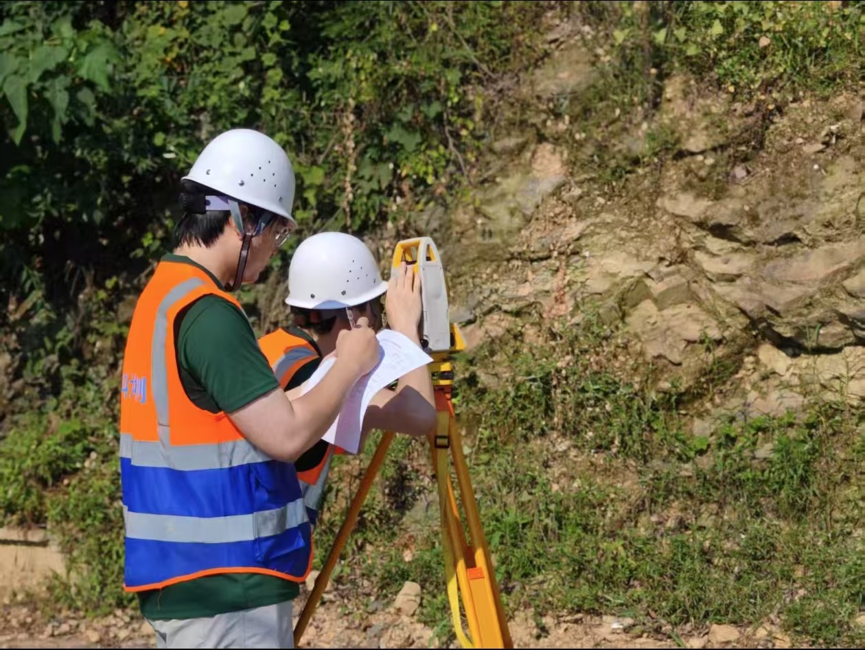 抵達(dá)爐竹村后,團(tuán)隊(duì)迅速投入緊張有序的工作。他們攜帶了地質(zhì)探測儀、無人機(jī)、全站儀、測距儀等一系列先進(jìn)專業(yè)設(shè)備,這些裝備如同他們的“秘密武器”,為精準(zhǔn)探測地質(zhì)隱患提供了有力支撐。在帶隊(duì)導(dǎo)師的現(xiàn)場指揮下,團(tuán)隊(duì)成員有條不紊地對當(dāng)?shù)氐幕聟^(qū)域展開細(xì)致勘查,仔細(xì)分析邊坡巖體的傾向與傾角,不放過任何一個(gè)可能影響邊坡穩(wěn)定性的細(xì)節(jié);利用皮尺,認(rèn)真丈量邊坡的高度、長度等關(guān)鍵數(shù)據(jù),為后續(xù)的分析提供基礎(chǔ)依據(jù);操作全站儀對邊坡進(jìn)行三維坐標(biāo)測量,通過高精度的測繪數(shù)據(jù)構(gòu)建出邊坡的精確形態(tài)模型,從而對邊坡穩(wěn)定性進(jìn)行科學(xué)評估,并運(yùn)用專業(yè)軟件對拍攝數(shù)據(jù)進(jìn)行深入分析,進(jìn)一步挖掘潛在的地質(zhì)隱患。