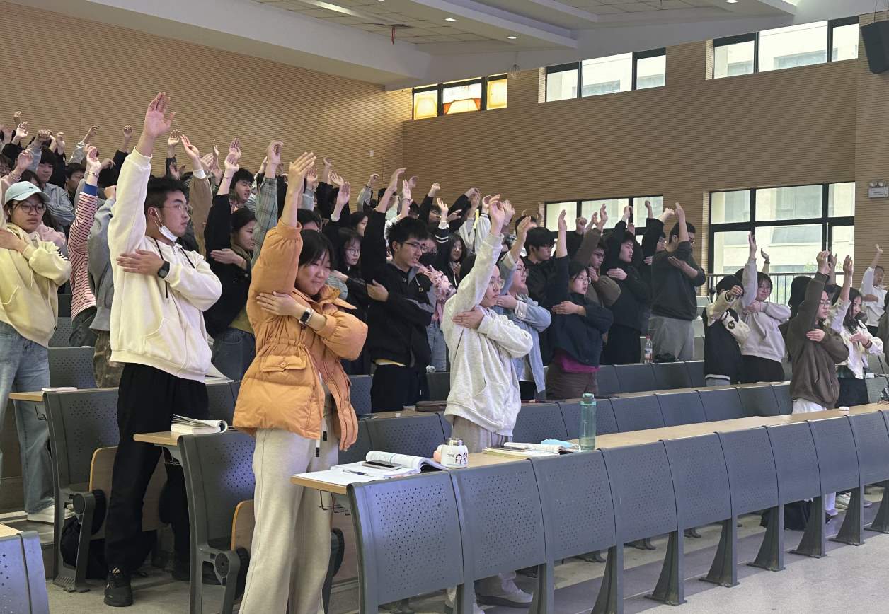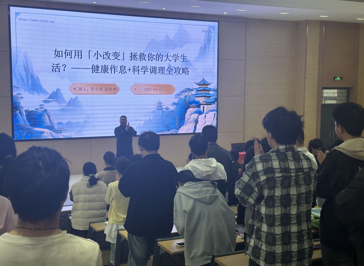 彭老師的講座內(nèi)容豐富多彩,從《黃帝內(nèi)經(jīng)》的養(yǎng)生理論到現(xiàn)代大學(xué)生的亞健康問題,引經(jīng)據(jù)典又貼近生活。他特別針對大學(xué)生常見的熬夜問題,給出了"子時前入睡"的黃金法則,并解釋道:"夜里11點(diǎn)到凌晨1點(diǎn)是膽經(jīng)當(dāng)令的時候,這個時候入睡最能養(yǎng)肝血、護(hù)陽氣。"為了讓同學(xué)們更直觀地理解,他還現(xiàn)場演示了幾個簡單的穴位按摩手法,幫助緩解熬夜后的疲勞癥狀。