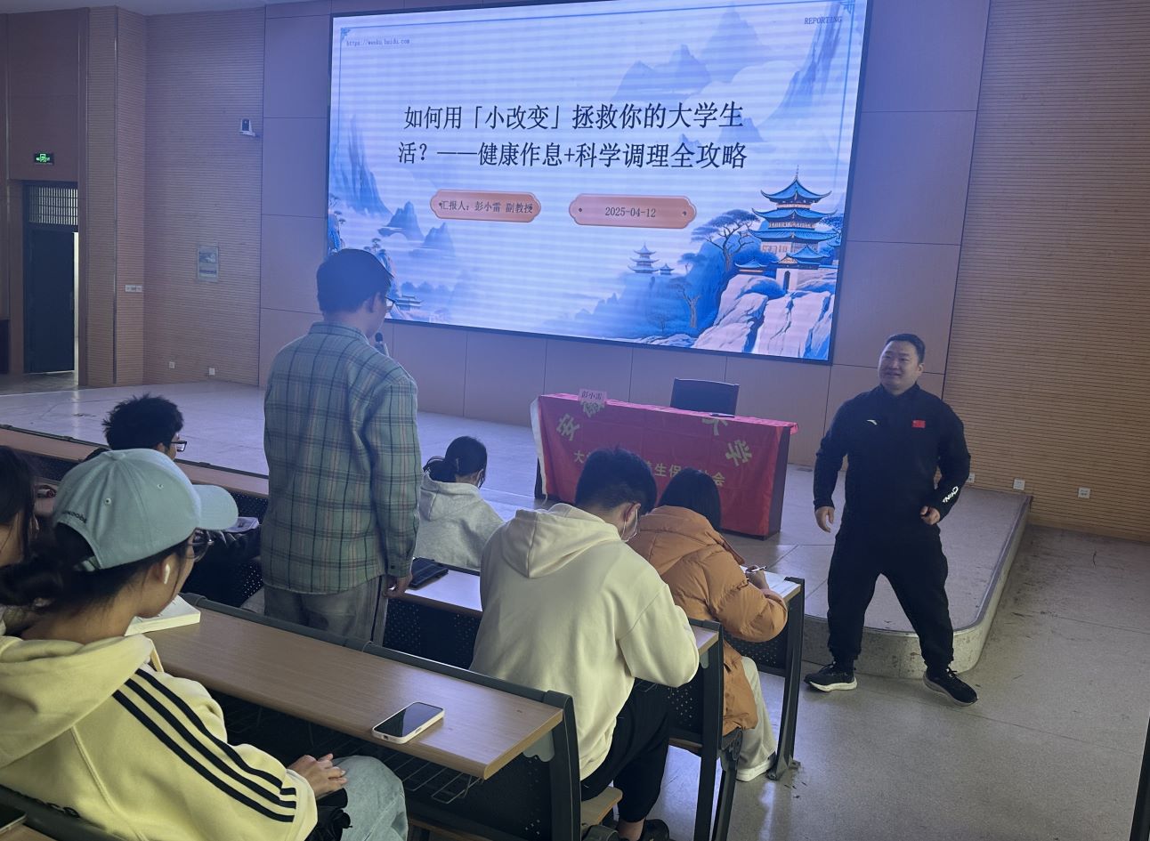 春日的校園里,一場關(guān)于健康生活的智慧盛宴正在上演。2025年4月15日下午,由大學(xué)生傳統(tǒng)養(yǎng)生與保健協(xié)會精心策劃的"拒做熬夜學(xué)子,擁抱健康青春"中醫(yī)養(yǎng)生知識講座,在少荃湖校區(qū)公共教學(xué)樓B301教室溫暖開講。這場融合了傳統(tǒng)智慧與現(xiàn)代生活的養(yǎng)生講堂,吸引了來自各院系的300余名學(xué)子熱情參與,現(xiàn)場座無虛席,連走廊都站滿了慕名而來的同學(xué)。