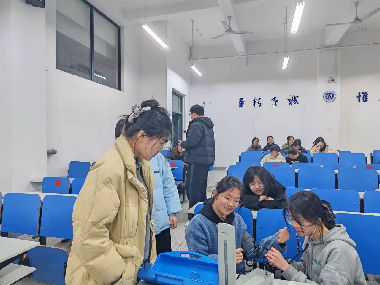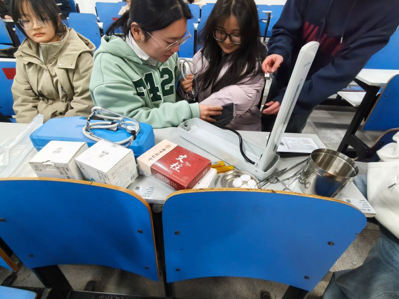 活動(dòng)開始前,醫(yī)療部部長張明陽早早來到教室,精心布置培訓(xùn)場地。血壓計(jì)、血糖儀、艾條、推拿巾等器具整齊擺放在課桌上,黑板上寫著"精誠所至,金石為開"的勉勵(lì)標(biāo)語。"我們希望通過這樣的培訓(xùn),讓每位社員都能學(xué)到真本領(lǐng),"張明陽一邊調(diào)試設(shè)備一邊說,"這些看似簡單的手法,往往能幫助很多人緩解病痛。"