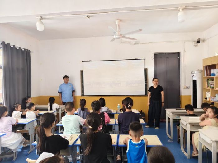 離開紀念館后,實踐隊伍前往魯山四街小學附近,開展“紅色故事進校園周邊”活動。團隊成員化身講解員,用生動活潑的語言為圍攏過來的小學生們講述紅色故事。隨后播放紅色動畫電影,孩子們被深深吸引,現(xiàn)場掌聲不斷。實踐團隊負責人王權燚稱,希望以孩子易于接受的方式讓紅色精神扎根心中。