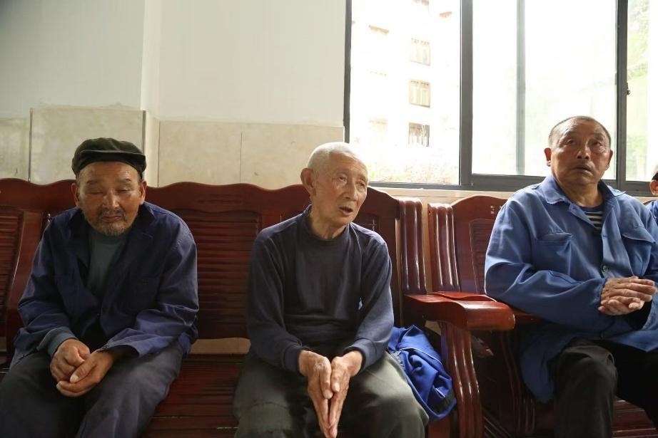 7月15日,重慶市石柱縣中益鄉(xiāng)華溪村,重慶外語外事學院“三下鄉(xiāng)”社會實踐團在敬老院聽涂光斌爺爺(左二)唱《三大紀律八項注意》。重慶外語外事學院西方語學院/供圖