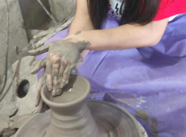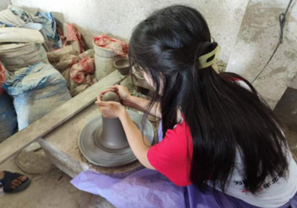 7月22日,北京科技大學(xué)華夏拾遺實(shí)踐團(tuán)只為鈞來(lái)實(shí)踐隊(duì)在進(jìn)行了一段時(shí)間的理論研究與采訪咨詢后,開(kāi)始聯(lián)系相關(guān)鈞窯,進(jìn)行實(shí)地探訪。實(shí)踐隊(duì)伍首先參觀了鈞窯的工作環(huán)境,仔細(xì)觀察了鈞瓷的制作過(guò)程,增進(jìn)了對(duì)鈞瓷制作的了解。在實(shí)地參觀之后,隊(duì)員們進(jìn)行了實(shí)踐,與鈞窯內(nèi)的老先生學(xué)習(xí)拉胚。在制作過(guò)程中,隊(duì)員們感受到了制作的不易,鈞瓷的制作并非人們所想象中的那樣,只是“玩泥巴”而已,它對(duì)于手控制的方向,力度等都具有較大的要求。在此次實(shí)踐體驗(yàn)后,我們深感鈞瓷手工藝者的不易,也敬佩于他們的匠心。