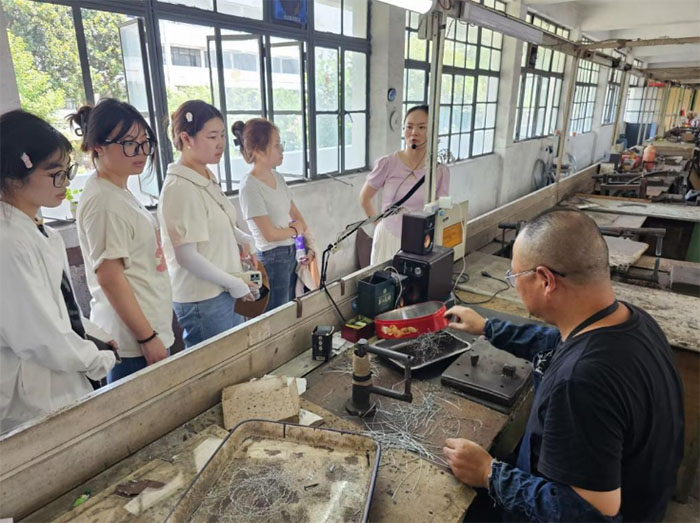 談及鐵畫現(xiàn)狀,張老師坦言困境:“最急迫的是后繼乏人。”許多老匠人年事已高,而年輕人難以沉心學(xué)習(xí)這門需數(shù)十年錘煉的手藝。隨即他便說道:“只要有人愿學(xué),我們絕對(duì)傾囊相授。非遺傳承的本質(zhì),不就是為人民留住美的技藝嗎?”這句質(zhì)樸的總結(jié)讓隊(duì)員們深受觸動(dòng),現(xiàn)場(chǎng)響起熱烈掌聲。
