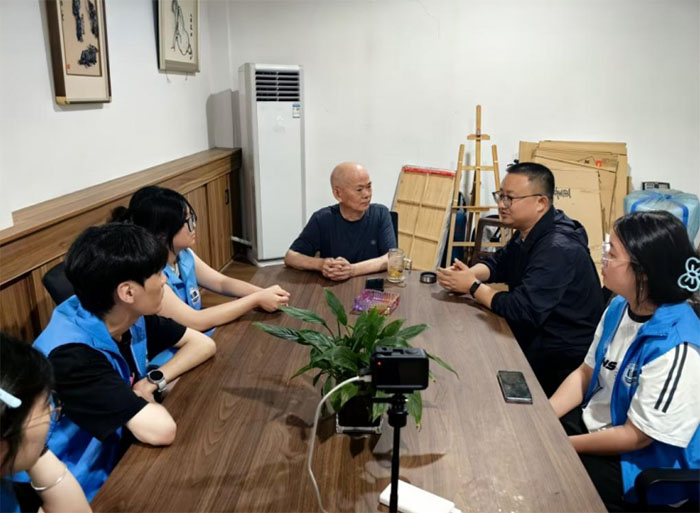7月8日,實(shí)踐團(tuán)從黃山返回蕪湖后,專程拜訪鐵畫國(guó)家級(jí)非遺傳承人張家康。面對(duì)團(tuán)隊(duì)關(guān)于《富春山居圖》鐵畫創(chuàng)作的提問,張老師眼神中泛起回憶:“這不是簡(jiǎn)單的復(fù)制,而是跨越時(shí)空的對(duì)話。光研究原畫構(gòu)圖就用了十年,真正動(dòng)手鍛造又花了22個(gè)月。”他特別提到畫中細(xì)節(jié)的艱難——572個(gè)題跋文字與印章,僅這一部分便需反復(fù)錘打兩個(gè)月,“每一鑿都要還原黃公望的筆墨氣韻”。