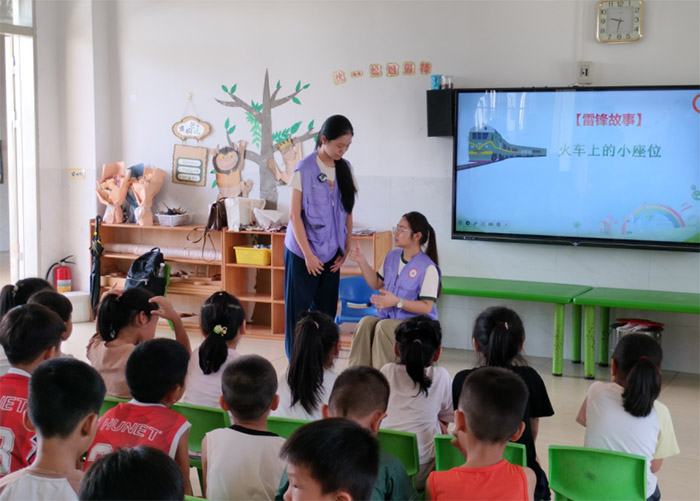 7月15日,廣東省外語藝術(shù)職業(yè)學(xué)院馬克思主義學(xué)院外藝追夢(mèng)者社會(huì)實(shí)踐隊(duì)(以下簡(jiǎn)稱實(shí)踐隊(duì))在廉江市石城鎮(zhèn)軍屯建龍幼兒園開展支教活動(dòng)。實(shí)踐隊(duì)以傳承雷鋒精神為主題,通過紅歌傳唱、故事演繹、繪畫創(chuàng)作等形式,講好雷鋒故事。實(shí)踐隊(duì)將雷鋒精神融入幼兒教育場(chǎng)景,引導(dǎo)小朋友們認(rèn)識(shí)雷鋒,學(xué)習(xí)雷鋒,在體驗(yàn)中感悟奉獻(xiàn)內(nèi)涵,在行為中培育向善品格,在小朋友們心中播下雷鋒精神的種子。