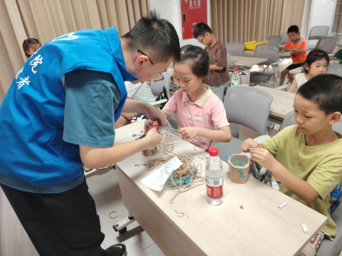 “如果有人給你吃奇怪的糖,一定要大聲說(shuō)‘不’!”志愿者們用情景模擬開(kāi)展兒童防侵害教育,孩子們積極舉手分享“自我保護(hù)小妙招”。隨后的手工筆筒制作環(huán)節(jié),在志愿者的帶領(lǐng)下,孩子們將麻繩纏繞瓶身,再以鮮花點(diǎn)綴,發(fā)揮出自己的創(chuàng)造力。教育與溫情,在干花的香氣里慢慢流淌。
