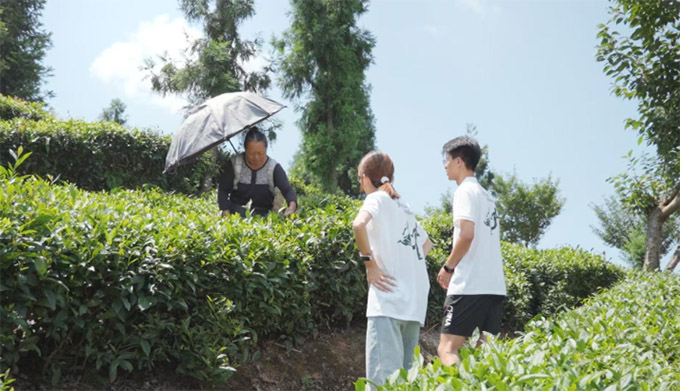 實(shí)踐團(tuán)走進(jìn)馬邊的高山茶園與茶工廠。清晨的茶園被薄霧籠罩,彝族茶農(nóng)背著竹簍穿梭其間,指尖輕捻采下帶著晨露的嫩芽。實(shí)踐團(tuán)與茶農(nóng)攀談,茶農(nóng)熱情地傳授采摘技巧,指尖翻飛間,藏著與這片土地共生的默契,在交流中,隊(duì)員們了解到馬邊茶葉的悠久歷史。