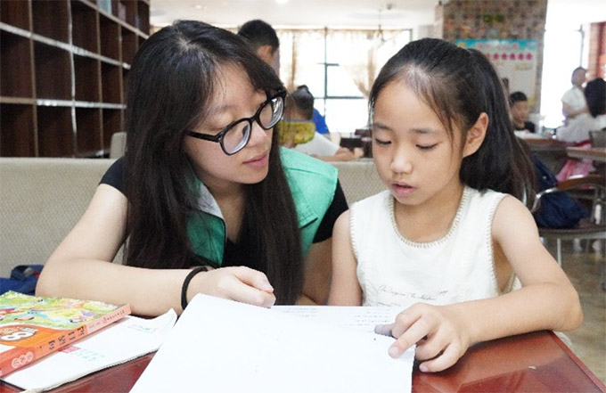 圖為志愿者給小朋友輔導(dǎo)作業(yè)張智坤供圖
