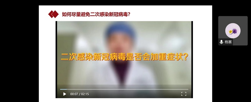 習(xí)總書記在黨的二十大報(bào)告中強(qiáng)調(diào),要“推進(jìn)健康中國建設(shè)”,“把保障人民健康放在優(yōu)先發(fā)展的戰(zhàn)略位置,完善人民健康促進(jìn)政策”。結(jié)合當(dāng)前疫情形勢,為全面貫徹黨的二十大提出的健康中國建設(shè)要求,進(jìn)一步提高社區(qū)居民的健康保健意識,幫助大家樹立健康的生活理念,營造健康文明和諧的社區(qū)氛圍,2月6日上午,山東大學(xué)文學(xué)院“研心永炙”防疫知識宣講團(tuán)采用線上會議的形式,為青島市萊西市經(jīng)濟(jì)開發(fā)區(qū)劉家院西社區(qū)的廣大居民帶來了一場關(guān)于“健康知識科普”的宣講活動(dòng)。