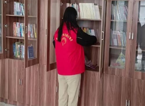 “奮進”實踐團在檢閱孩子們的作業(yè)