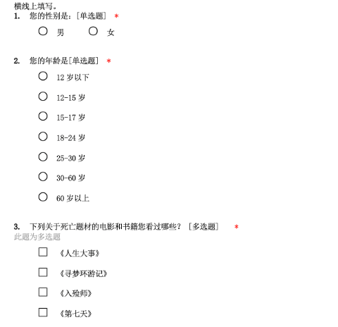 首先,團(tuán)隊(duì)進(jìn)行了線上問卷調(diào)研,該線上調(diào)查問卷自2022年12月20日發(fā)布,2023年2月5日截止,歷時47天,共收集到225份有效結(jié)果。線上問卷共分為三大部分,分別是:受訪人基本信息、受訪人對死亡的看法以及受訪者認(rèn)為死亡教育在社會的普及度。
