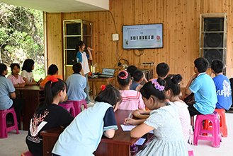 圖為山陽村小朋友在課上積極思考,回答問題 白紫怡 攝