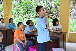 圖為音樂課上小朋友要志愿者老師唱歌 白紫怡 攝