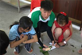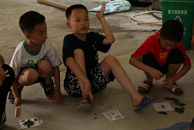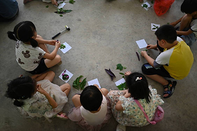 7月4日,湖南科技大學(xué)土木工程學(xué)院暑期三下鄉(xiāng)社會實(shí)踐志愿服務(wù)團(tuán)支教組在湖南省洞口縣毓蘭鎮(zhèn)山陽村開展支教活動,帶領(lǐng)山陽村的孩子們體驗(yàn)非物質(zhì)文化遺產(chǎn)——植物拓染,提高孩子們對中華傳統(tǒng)文化的認(rèn)同感,用一朵花、一片葉、一塊布、一把錘,就可以留下植物的自然形狀與色彩。