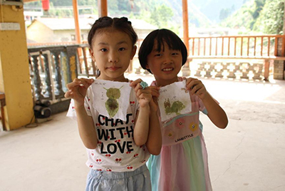 小朋友與他設(shè)計(jì)的拓染初形。秦金穗 攝