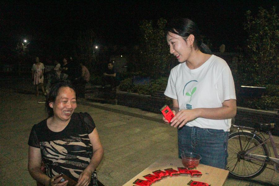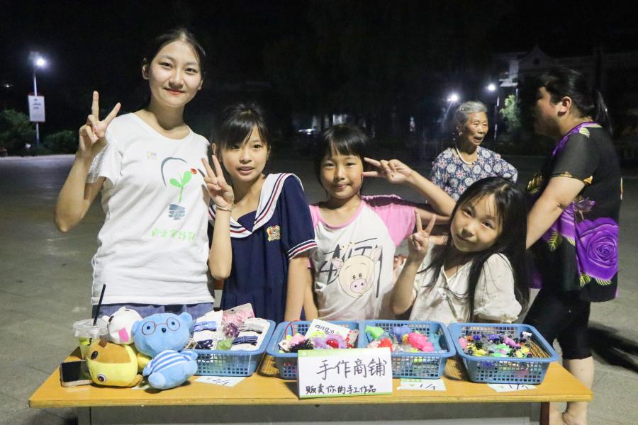 共謀商定主題,共建盤活資源。在當(dāng)?shù)卮逦瘯膸椭,?shí)踐隊(duì)員們與孩子們共同謀劃籌備,成功設(shè)立“創(chuàng)作工坊”“手作商攤”“智慧叢林”等五個攤位。同時,結(jié)合百丈河村的特色茶葉產(chǎn)業(yè),隊(duì)員們聯(lián)合村民另設(shè)“百丈茶莊”攤位。在活動現(xiàn)場,百丈河村婦聯(lián)主任胡星星指出,此次鄉(xiāng)村創(chuàng)意集市實(shí)現(xiàn)了村兩委、大學(xué)生團(tuán)隊(duì)、村民、學(xué)生等多群體的聯(lián)動,真正做到一呼百應(yīng),為構(gòu)建共建共治共享的鄉(xiāng)村治理格局搭建了良好平臺。
