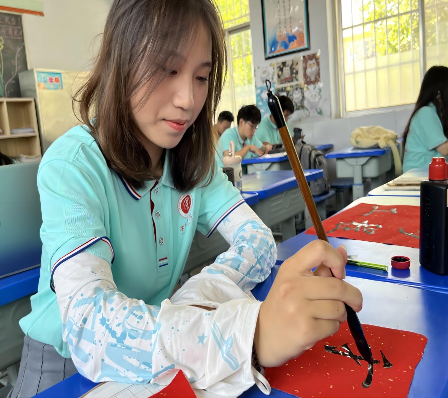 (此圖為豫才支教隊(duì)成員毛筆書寫 書寫者:趙佳怡 拍攝者:丁毅雯)