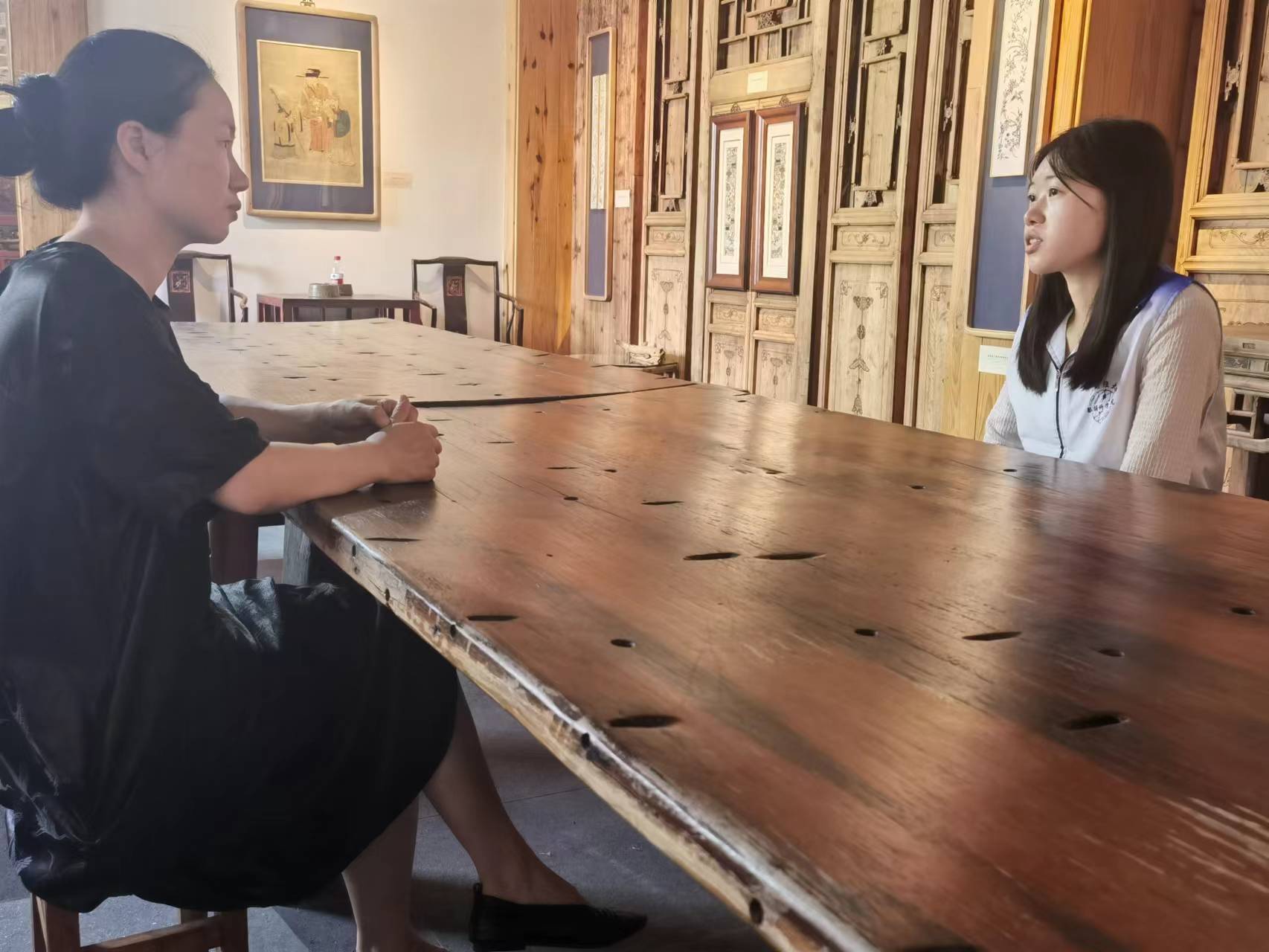圖為采訪博物館負(fù)責(zé)人崔老師