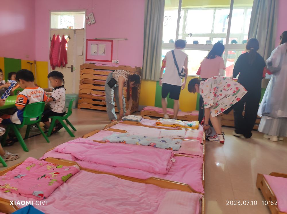 到了午休時(shí)間,隊(duì)員們幫助老師為小朋友們布置床位,過程中,隊(duì)員們還向孩子們演唱了事先準(zhǔn)備好的防溺水科普歌曲,同時(shí)通過表演的短劇教育小朋友們防拐騙,注意自身的安全。實(shí)踐團(tuán)希望通過這樣的活動(dòng),提高小朋友的安全意識,讓他們在愛心的滋潤下,快樂的成長。