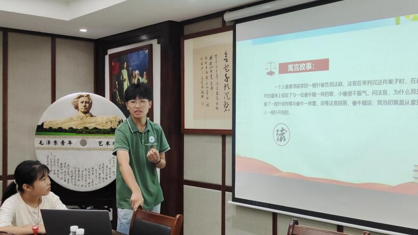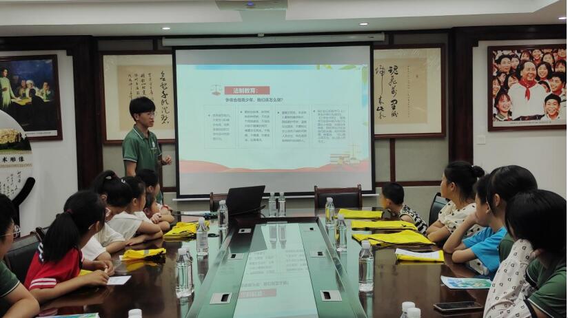 圖為社會實踐團成員在介紹與未成年人相關的法律