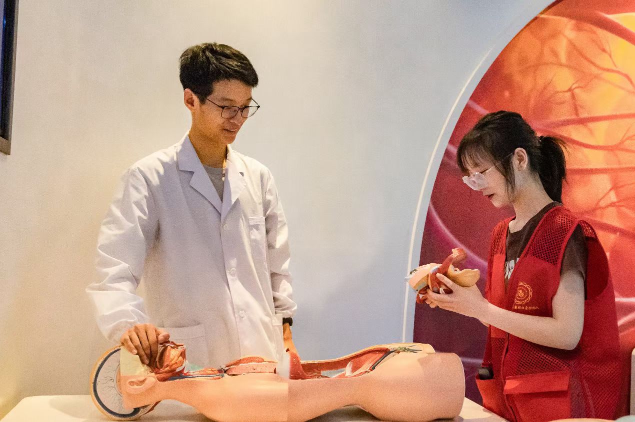 圖為成員們通過運(yùn)動模型學(xué)習(xí)相關(guān)人體知識