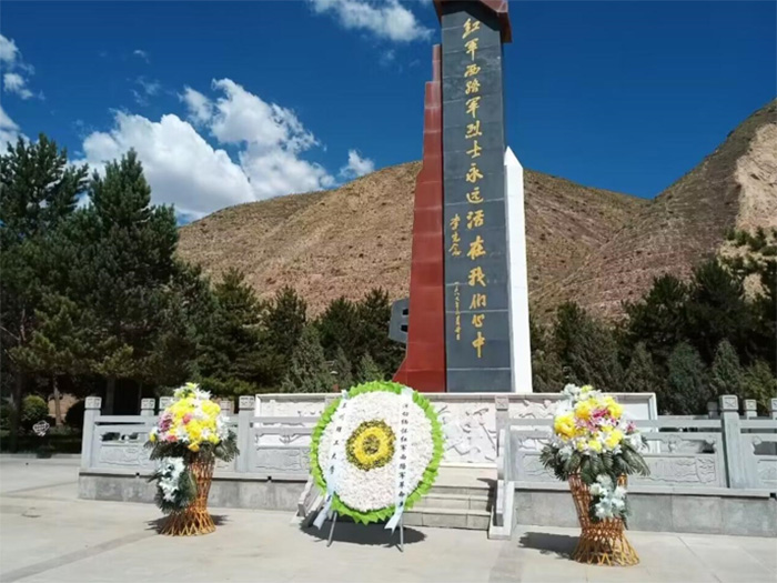 在莊嚴(yán)肅穆的西路軍烈士紀(jì)念碑前,“紅軍西路軍烈士永遠(yuǎn)活在我們心中”鎏金大字在太陽的照射下熠熠生輝。大家聆聽革命烈士浴血奮戰(zhàn)的故事,向西路軍烈士紀(jì)念碑敬獻(xiàn)花圈,并整理綬帶,深切緬懷革命先烈。