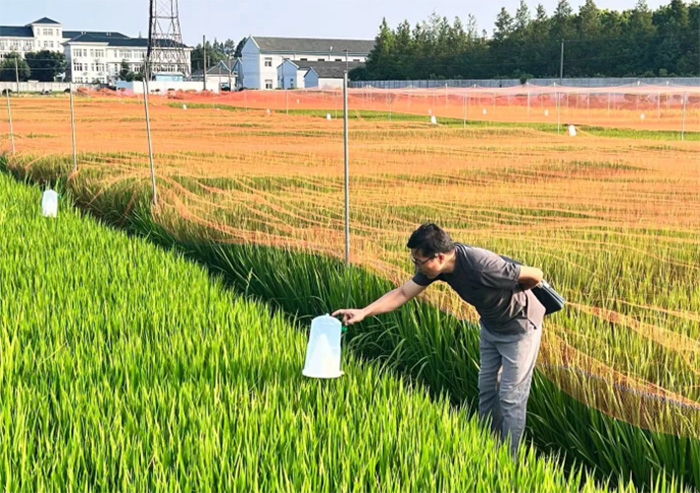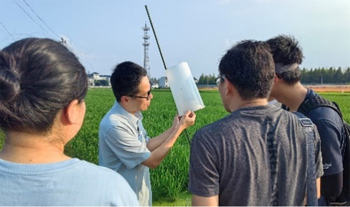 成員們還跟隨農(nóng)科院老師參觀了農(nóng)科院實(shí)驗(yàn)田,簡單了解科研內(nèi)容,積極學(xué)習(xí)先進(jìn)的農(nóng)業(yè)理念和技術(shù)。隨鄧建宇老師一起深入田間地頭檢查誘捕器,用手剝開黏連的稻葉查看害蟲為害情況