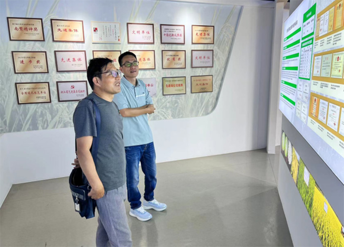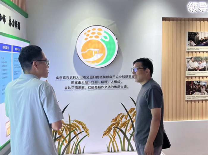 在交流溝通之后,農(nóng)科院的老師熱情地帶領(lǐng)團(tuán)隊(duì)參觀了農(nóng)科院科普展示廳。團(tuán)隊(duì)成員們在展廳里見證了嘉興市農(nóng)科院的科研歷史和成果,堅(jiān)定了強(qiáng)農(nóng)興農(nóng)的責(zé)任感和使命感。