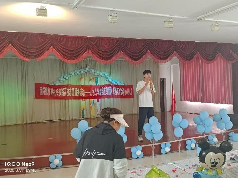 支教期間,恰逢西崗鎮(zhèn)中心幼兒園大班畢業(yè)典禮。作為志愿者代表,張博文受邀為即將畢業(yè)的小朋友們送上了一份特別的“成長(zhǎng)禮物”。站在典禮的舞臺(tái)上,他沒(méi)有講深?yuàn)W的大道理,而是結(jié)合自己的學(xué)習(xí)經(jīng)歷,用孩子們能聽(tīng)懂的語(yǔ)言,分享了如何養(yǎng)成良好的學(xué)習(xí)習(xí)慣、如何在生活中保持對(duì)世界的好奇心與探索欲。“大家知道嗎?我小時(shí)候也和你們一樣,總愛(ài)問(wèn)‘為什么’,比如天空為什么是藍(lán)色的,小鳥(niǎo)為什么會(huì)飛。后來(lái)通過(guò)讀書(shū)學(xué)習(xí),我慢慢找到了答案。”張博文笑著說(shuō),“就像我們會(huì)用心愛(ài)護(hù)自己的玩具一樣,國(guó)家也需要我們每個(gè)人去守護(hù),而現(xiàn)在好好學(xué)習(xí),就是我們能為守護(hù)國(guó)家做的最重要的事。”