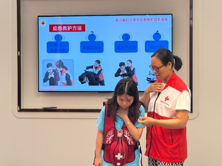 校園外,他們的腳步更顯溫情。在寧波市實(shí)驗(yàn)小學(xué)、寧波市第一幼兒園,“分齡教學(xué)”玩出了新花樣:小學(xué)生在模擬場(chǎng)景中親手實(shí)踐心肺復(fù)蘇,幼兒園小朋友跟著急救兒歌拍手互動(dòng),“安全小衛(wèi)士”的搶答聲里,藏著“教育一個(gè)孩子,影響一個(gè)家庭”的暖心期待。