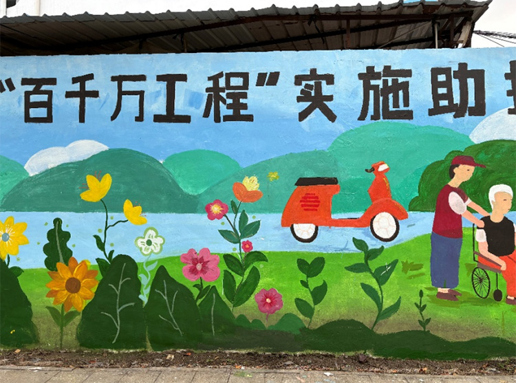 兩個(gè)周末的傾心創(chuàng)作,舊墻煥新顏,變身展現(xiàn)鄉(xiāng)村振興成果的生動(dòng)畫廊;顒(dòng)不僅扮靚了村容村貌,更以藝術(shù)化的語(yǔ)言傳遞文明理念,點(diǎn)燃了村民參與家園建設(shè)的熱情。過(guò)往的村民無(wú)不駐足贊嘆,為村莊煥發(fā)的新氣象而欣喜。