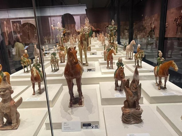 隋唐大運(yùn)河文化博物館內(nèi)展出的唐三彩馬俑 左旭 攝