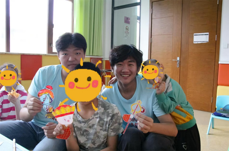 在制作的過(guò)程中,幾個(gè)小朋友圍在志愿者旁邊,跟志愿者說(shuō):“我們?cè)趯W(xué)校的時(shí)候都不怎畫畫,我畫畫一點(diǎn)都不好看,但是我喜歡畫畫”