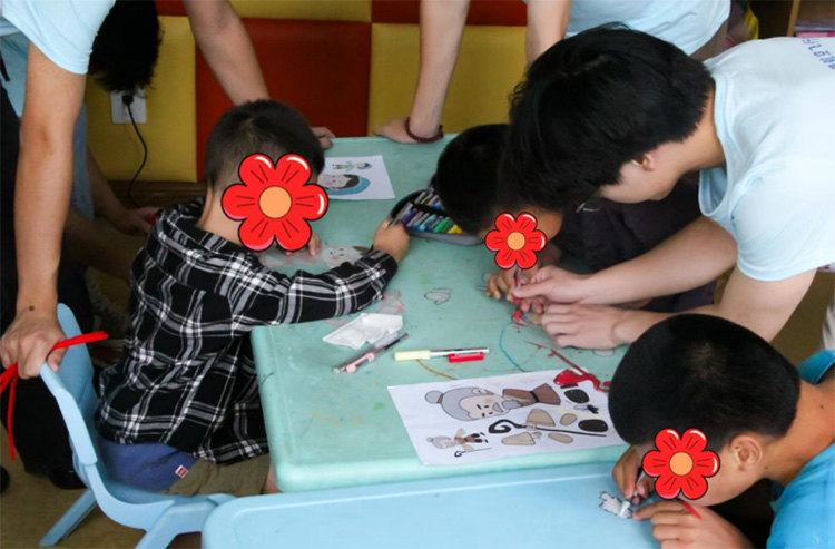 在學(xué)習(xí)制作皮影環(huán)節(jié),團(tuán)隊(duì)成員耐心地向孩子們講解皮影制作的步驟和技巧,并為他們分發(fā)了制作材料?紤]到小朋友們的特殊情況,團(tuán)隊(duì)提前對(duì)制作流程進(jìn)行了簡(jiǎn)化和優(yōu)化。在志愿者們的悉心指導(dǎo)下,孩子們充分發(fā)揮想象力,拿起畫筆為皮影人物描繪色彩、添加裝飾。有的孩子專注地為皮影人物繪制漂亮的服飾花紋,有的孩子小心翼翼地為皮影裝上關(guān)節(jié),雖然動(dòng)作略顯笨拙,但每一個(gè)步驟都充滿了認(rèn)真與熱情。經(jīng)過(guò)近兩個(gè)小時(shí)的努力,一個(gè)個(gè)栩栩如生的皮影人物在孩子們手中誕生,看著自己的作品,孩子們臉上洋溢著自豪與喜悅的笑容。