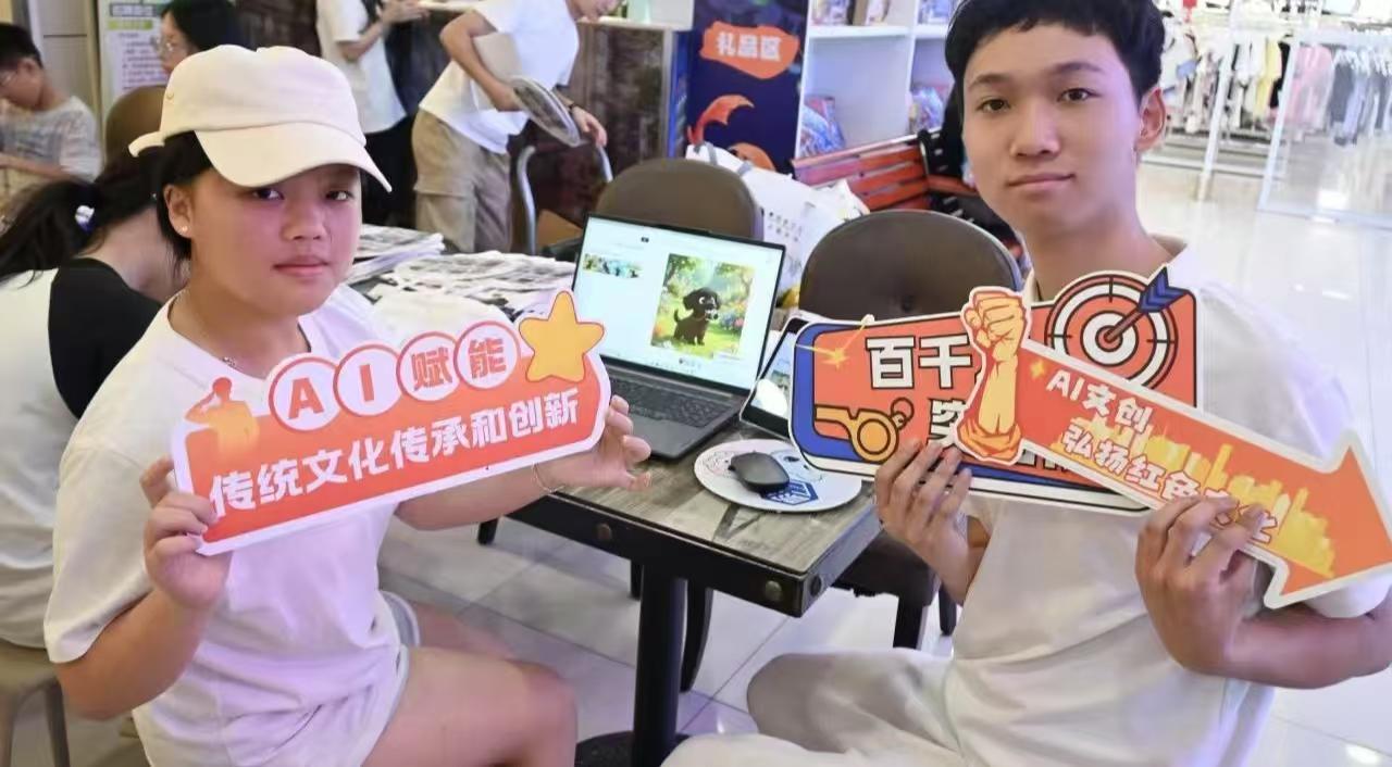 7月12日,實踐團在歲寶百貨二樓活動中心舉辦“共促智創(chuàng)·鑄亮紅基因”主題擺攤活動,F(xiàn)場巧妙將AI技術實踐與家鄉(xiāng)情懷抒發(fā)相融合,團隊成員運用各種AI工具,邀請居民參與體驗,共同創(chuàng)作具有北中特色的紅色數(shù)字文創(chuàng)產(chǎn)品;顒油ㄟ^科技實踐、文化創(chuàng)作,讓紅色基因在科技互動中煥發(fā)光彩,以青春之姿書寫智創(chuàng)賦能、文化傳承的實踐篇章,讓紅色火種在夏日商場持續(xù)傳遞、熠熠生輝。