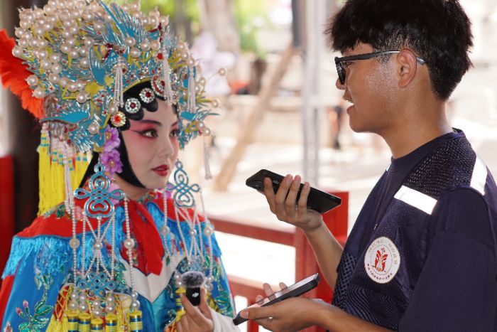 當采訪接近尾聲時,調研團隊向石妍老師提出了合影的請求,石老師說,有很多游客也會在演出結束后找她合影,而這恰是豫劇傳播的“埋根”和“播種”。