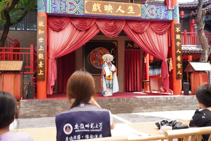 7月4日,安徽師范大學音樂學院赴河南省開封市豫劇院祥符調刀馬旦藝術調研團隊的調研之旅走進了開封市著名旅游景點文化地標——萬歲山武俠城。在此行中,團隊以“傳統(tǒng)文化的創(chuàng)造性轉化和創(chuàng)新性發(fā)展”為研究切口,重點考察了景區(qū)內深度融合創(chuàng)新的展演節(jié)目形式,見證了豫劇藝術在文旅場景中迸發(fā)的鮮活生命力和豫劇人在豫劇傳承發(fā)展道路上的大膽嘗試。