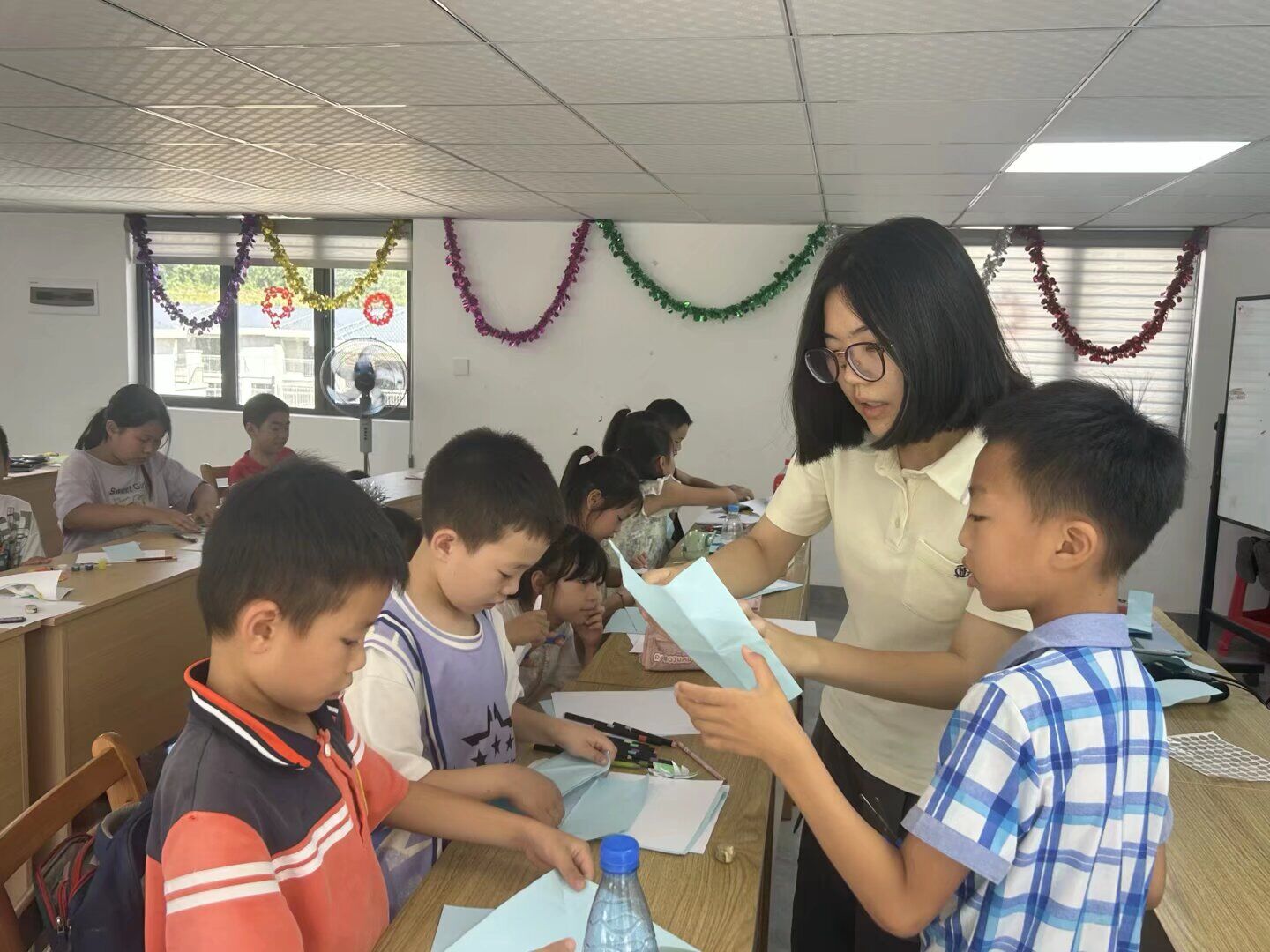 齊暢帶領(lǐng)孩子們動(dòng)手制作紙翻花 喬金格供圖