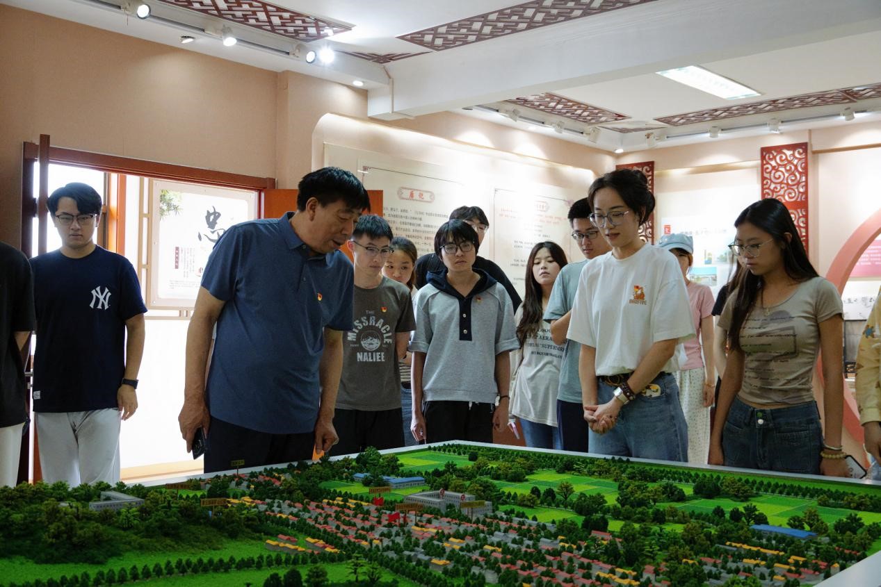 隨后,在豆各莊村兩委干部的陪同下,實(shí)踐團(tuán)參觀了豆各莊村史館,了解了“竇燕山”、“五子登科”等歷史典故以及密云人民為保障首都用水做出的巨大貢獻(xiàn),深刻感受豆各莊村的深厚文化底蘊(yùn)和歷史傳承。通過實(shí)地參觀,團(tuán)隊(duì)成員對(duì)村莊的發(fā)展脈絡(luò)、特色產(chǎn)業(yè)和黨建成果有了更加直觀的認(rèn)識(shí),深切體會(huì)到豆各莊的鄉(xiāng)土人情,為后續(xù)用數(shù)字技術(shù)助力鄉(xiāng)村發(fā)展提供了堅(jiān)實(shí)的文化基礎(chǔ)和實(shí)踐依據(jù)。
