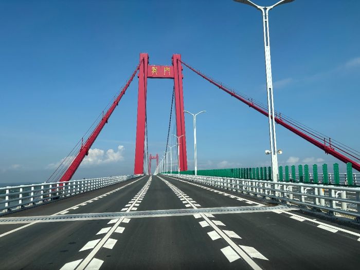 隨后,實踐隊乘坐班車前往龍門大橋參觀學(xué)習。作為廣西重點交通工程,龍門大橋跨越欽州灣,是連接北部灣經(jīng)濟區(qū)的重要通道。在項目負責人的講解下,隊員們深入了解大橋的設(shè)計理念、施工難點及技術(shù)創(chuàng)新,深刻感受到交通建設(shè)者的智慧與擔當。