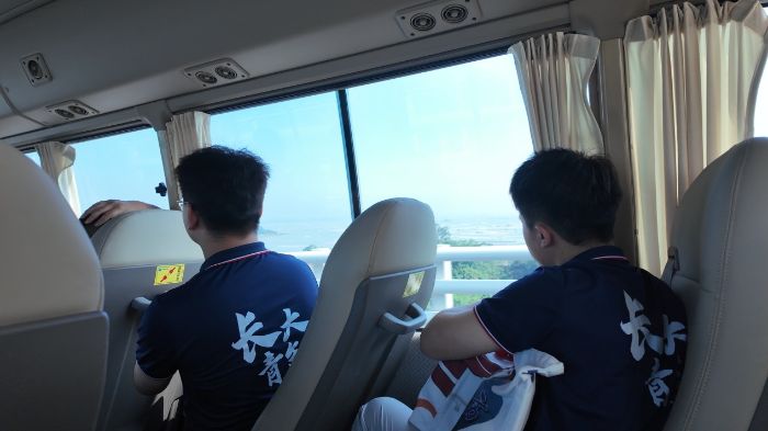 實踐隊員乘車觀看龍門大橋 吳思玥攝