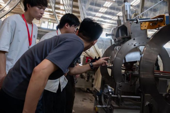 實踐隊員參觀再生材料生產(chǎn)線.許國浩攝