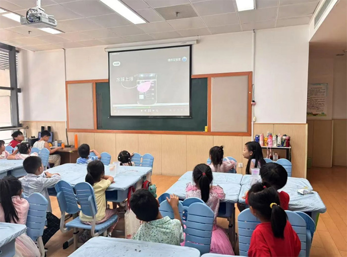 志愿者為孩子們揭開“火山噴發(fā)”現(xiàn)象的神秘面紗,此現(xiàn)象是由于泡騰片釋放二氧化碳,密度差讓“巖漿”上浮,氣泡破裂后又回落,模擬真實火山噴發(fā)。孩子們在這個過程不僅能感受到科學的樂趣,還可以學到科學知識。