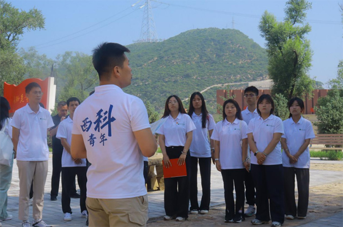 隨后,實(shí)踐團(tuán)走進(jìn)王家坪革命舊址。靜臥延河之畔的土墻小院,曾是中共中央軍委和八路軍總部駐地。成員們沿軍委作戰(zhàn)室的斑駁長(zhǎng)桌緩步前行,遙想毛主席燈下草擬電文的場(chǎng)景;駐足舊居窗前,半盞油燈仍似星火閃爍。青春與歷史在此對(duì)視,先輩以窯洞為營(yíng)、山河為卷的奮斗歷程,讓成員們更加堅(jiān)定了“把延安風(fēng)骨寫(xiě)進(jìn)能源報(bào)國(guó)實(shí)踐”的信念。