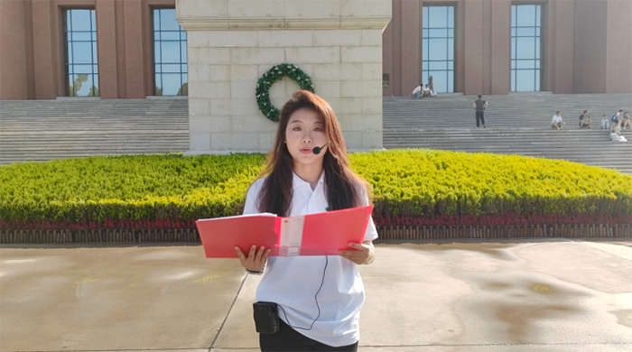 實(shí)踐團(tuán)成員楊盈在照金革命紀(jì)念館進(jìn)行“紅星照耀”主題宣講。董金濤 供圖