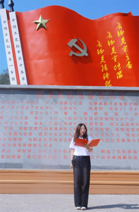 實(shí)踐團(tuán)成員李丹陽(yáng)在甘泉雪地講話(huà)舊址進(jìn)行主題演講。董金濤 供圖
