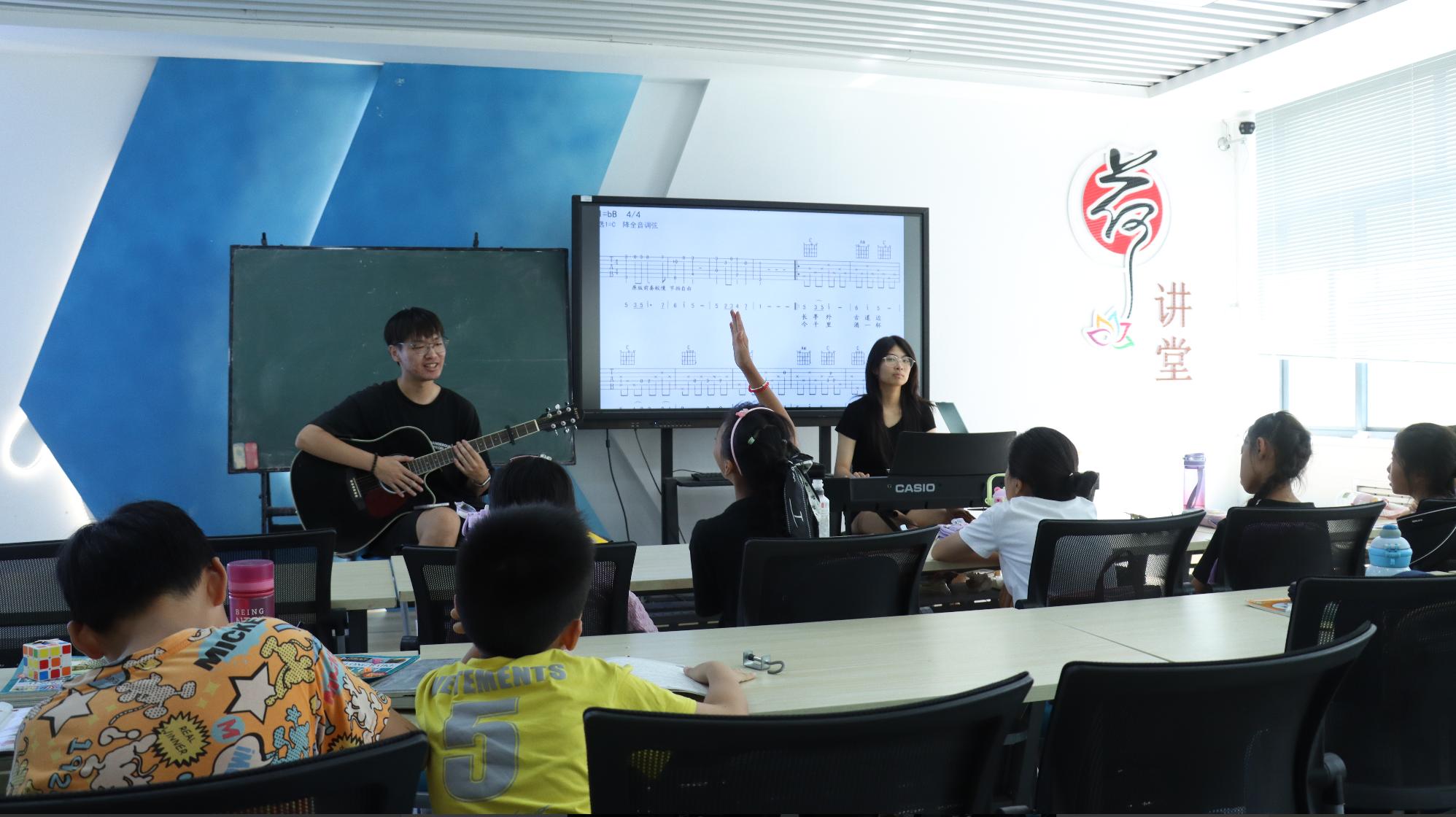 七月的驕陽(yáng)似火,荷韻小學(xué)校園內(nèi)綠樹成蔭,蟬鳴陣陣。7月28日下午,在荷韻小學(xué)明亮整潔的活動(dòng)室里,一場(chǎng)別開生面的音樂(lè)課正在火熱進(jìn)行。“圓夢(mèng)”暑期實(shí)踐團(tuán)的成員們,帶著對(duì)鄉(xiāng)村教育的熱情和對(duì)藝術(shù)啟蒙的信念,為這里的孩子們打開了一扇通往音樂(lè)殿堂的窗戶;顒(dòng)室內(nèi),稚嫩的臉龐洋溢著期待與興奮,空氣中彌漫著躍動(dòng)的音符和對(duì)藝術(shù)的好奇。